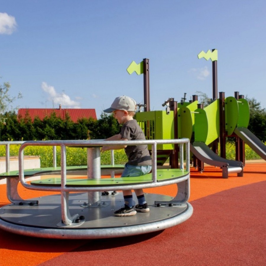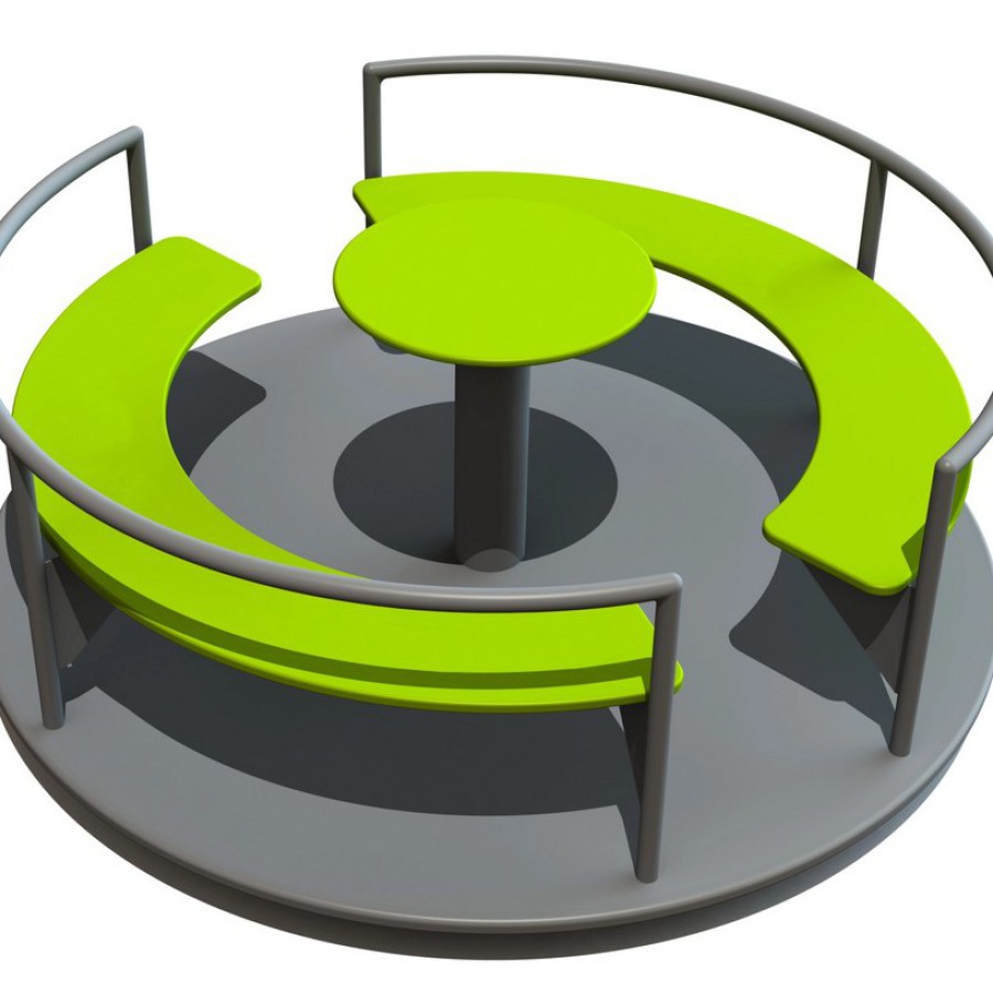 Einfaches Drehvergnügen durch manuelles Anschieben, stationärer Mitteltisch ermöglicht sicheren Spielkomfort.