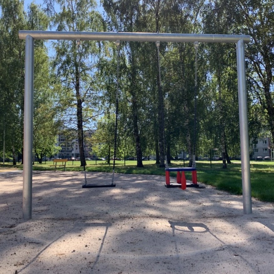 Freistehendes Schaukelgestell für zwei Sitze – einfach zu montieren, pflegeleicht und sicher.